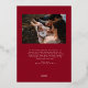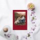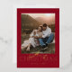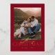 Cette carte de Noël élégante est dotée d'une seule photo encadrée par un riche arrière - plan vert, lui donnant une atmosphère de vacances classique. Le salut "Joyeux Noël" est pressé d'or ou d'argent chatoyant, ajoutant une touche luxueuse et festive au design. Les accents de feuille attrapent la lumière magnifiquement, créant un contraste étonnant contre l'arrière - plan rouge profond. Parfait pour envoyer des voeux de vacances personnalisés, cette carte allie élégance moderne et charme de Noël intemporel. Au dos, il y a de l'espace pour un message sincère pour rendre la carte encore plus spéciale.