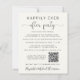 Élégant et économique, salon de crème légère ou petit faire-part mariage et réception de mariage ou invitation de fête. Le devant présente "Happily Ever After Party" en typographie simple et un script élégant avec des swashes. Customisez votre faire-part et votre invitation plus en détail, créez un code QR lié à votre site Web mariage pour que vos invités puissent scanner pour plus d'informations et à RSVP en ligne, et ajoutez vos noms dans un script de type signature. Au verso, vous trouverez votre photo de mariage préférée, vos prénoms et votre date de mariage.