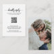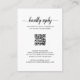 Mini carte RSVP Mariage simple en noir et blanc avec les mots "gentiment répondre" dans un script élégant avec des swashes. Ci-dessous, votre code QR et les instructions. Le dos a votre photo préférée. Cette carte RSVP moderne et minimaliste est coordonnée avec n'importe quel style de suite de faire-part de mariage.