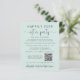 Étage vert menthe à petit prix ou petit faire-part mariage et réception de mariage ou de fête de fête. L'avant présente "Happily Ever After Party" en simple typographie et un script élégant, et vous pouvez customiser votre faire-part et invitation plus en détail, entrer votre URL de site Web mariage pour créer un code QR pour vos invités à scanner pour plus d'informations et à RSVP en ligne, et ajouter vos noms dans un script de type signature. Au verso, vous trouverez votre photo, vos prénoms et la date du mariage.