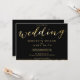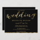 Elégante feuille d'or invitations mariage avec texte personnalisable imprimé sur arrière - plan noir