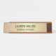 Plaque nominative personnalisée aux couleurs dorées et marron clair.