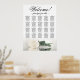 Élevez l'ambiance de votre réception de mariage avec ce chevalet exquis, avec une esthétique captivante et raffinée. Doté d'un magnifique design avec un rose solitaire en ivoire à long tige, blanc ou crème positionné horizontalement, reflétant délicatement dans un bassin d'eau tranquille, ce graphique respire le romantisme et le raffinement. Il peut accueillir confortablement 200 convives à 20 tables, chacune de 10 couverts. Le luxueux titre de calligraphie script accueille les clients avec un chaleureux "Welcome! S'il vous plaît trouver votre table" message, et il y a suffisamment d'espace en bas pour les noms du couple et la date mariage. Avec son aspect chic, élégant et de bon goût, ce tableau de sièges vous aidera à vous sentir bien, tout en vous assurant de pouvoir localiser rapidement votre siège.
