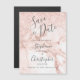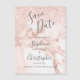 Un design chic et moderne avec une élégante arrière - plan en marbre décorée de faux parties scintillant dans les tons or rose, rose et blanc. Les mots "Save the Date" et les prénoms de la mariée et du marié apparaissent dans le script gris fusain, avec le texte restant dans la police sans serif.