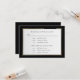 Ce script noir sur blanc avec une bordure dorée et noire est une carte rsvp élégante et carte de sélection de menu. Le dos a un arrière - plan noir avec vos noms et une esperluette dorée. Peut être utilisé pour les mariages, les renouvellements de voeux ou les anniversaires