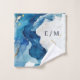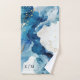 serviettes de bain blanches design modernes aquarelle bleue avec poussière blanche sur avec un effet d'encre or (l'or est un effet numérique, pas de vrai papier d'aluminium).
