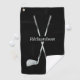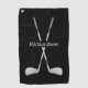 Élégant Monogram Golf Towel avec des clubs de golf croisés en aquarelle argent sur arrière - plan noir.