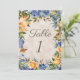 Elégante et romantique aquarelle bleu et orange floral automne/réception de mariage 5"x7" numéro de table, imprimé sur l'avant et l'arrière. Concevez-en un pour chaque table. Contactez-moi pour obtenir de l'aide sur vos personnalisations ou pour demander des produits Zazzle correspondants ou coordonnés supplémentaires pour votre douche ou d'autres événements mariages.