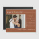 Mettez une bague autour de la date pour dire à vos invités d'enregistrer la date de vos prochains noces! (Instructions ci-dessous — lire sur) Ceci enregistrer la date faire-part carte magnétique dispose d'élégante calligraphie et simple police de typographie sans serif avec une photo et calendrier sur un arrière - plan en terre cuite avec des lignes faux or, anneau coeur or, et texte noir/blanc pour un look épuré minimaliste et moderne, ce qui est une belle façon de dire à vos invités d'informer sur votre mariage à venir. Annoncez à votre famille et à vos amis que vous vous mariez avec cette carte magnétique et ajoutez une touche personnelle avec une photo de vous et votre moitié future meilleure. La simplicité de ce design ajoute une touche d'élégance à votre mariage, à l'exception des cartes d'invitation à la date. Il fonctionne bien avec de nombreux thèmes mariages et certainement un grand ajout à votre mariage. Il suffit de customiser les noms, l'emplacement, le libellé et l'emplacement de l'anneau de la date en quelques étapes faciles et personnalisez la carte magnétique avec votre photo du couple heureux. Remarque : le libellé "Enregistrer la date" ainsi que d'autres illustrations graphiques et éléments ne peuvent pas être modifiés, modifiés ou supprimés. Si vous devez changer la couleur, vous pouvez customiser la carte. Vous pouvez customiser et personnaliser la carte pour répondre aux besoins de votre événement mariage et cliquez simplement sur la personnaliser de la carte.