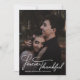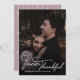 Envoyez votre remerciement après votre mariage avec ce design personnalisé avec une typographie de script blanc élégante et simple disant "pour toujours reconnaissante" Ajoutez votre photo de mariage vos noms. Cartes couleur inverse rose peut être changé pour s'adapter à votre schéma de couleurs photo.