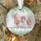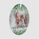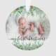 Premier ornement photo de Noël de Noël de bébé personnalisé. Créez une tenue de vacances personnalisée avec cet élégant ornement de Noël, mis à jour pour la première saison de vacances de votre petit. La façade est ornée d'une photo de bébé chère encadrée par une végétation botanique luxuriante, comprenant des branches de pin, des feuilles à feuillage persistant et des baies sèches. Un dégradé blanc sans soudure s'estompe dans la verdure en haut et en bas pour un look doux et festif. Juste au-dessus de la verdure au fond, "My First Christmas" est écrit dans un mélange de polices rouges et noires, ajoutant une touche sucrée et festive. Sur le dos, le design se poursuit avec la coordination de la verdure en haut et en bas, avec une deuxième option photo si vous le souhaitez. "Joyeux Noël" est écrit en script, avec le nom de votre enfant et l'année affichée ci-dessous. Un ornement intemporel et personnalisable, parfait pour célébrer le premier Noël d'un bébé et ajouter une touche chaleureuse à votre décor de vacances.