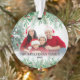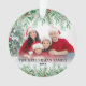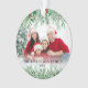 Nom personnalisé Élégant Verdure Joyeux Script de Noël Famille Photo Personnalisée Ornement Daté. Créez une tenue de vacances personnalisée avec cet élégant ornement de Noël, avec une grande photo de famille encadrée par une végétation botanique luxuriante. Le haut du design présente un dégradé blanc transparent qui se fond en branches de pins, en feuilles à feuillage persistant et en baies sèches rouges, offrant une touche festive et élégante. L'avant comprend également une verdure assortie le long du fond avec un doux dégradé blanc derrière, créant un look équilibré et fini. Votre nom de famille et l'année apparaissent en bas dans un mélange de polices rouges et noires pour une touche audacieuse et personnalisée. Au fond, le thème botanique se poursuit avec la verdure en haut et en bas, et "Joyeux Noël" est écrit avec élégance en script, avec votre nom et votre date à nouveau affiché. Un ornement intemporel et personnalisable, parfait pour célébrer la saison et ajouter une touche personnelle à votre décor de vacances.