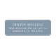 Étiquettes d'adresse de retour classiques. Polices blanches serif et sans serif sur un fond bleu poussiéreux. Collez sur le rabat gauche avant ou arrière des enveloppes et des petits paquets.