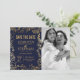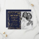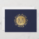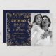 Élégant, moderne et chic motif floral bleu marine tendance et or faux, carte de faire-part de mariage dessinée à la main. Ce design classique et sophistiqué est parfait pour le couple qui se marie tendance et stylé. Personnalisez avec votre propre message sur le devant ainsi qu'un monogramme personnalisé au dos. Conception d'impression photo personnalisable.