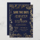 Élégantes faire-part de mariage bleu marine et or