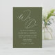 Élégantes invitations de mariage présentant 'Nous nous marions' en haut du design dans un script de calligraphie blanche moderne avec un fond vert olive. Personnalisez les invitations de mariage classiques vert olive avec vos noms, date de mariage, lieu de mariage, etc. L'invitation de mariage Nous nous marions est parfaite pour les mariages d'été, d'automne, d'hiver et de printemps. Conçue pour se coordonner avec notre collection de mariage Modern Elegance.