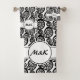 L'ensemble de serviettes de bain aux initiales élégantes noir et blanc en forme de feuille de fougère fait partie de la collection Curls Bathroom Decor & Bathing Accessories. En Nouvelle-Zélande, une feuille de fougère qui se déroule est appelée koru et symbolise de nouveaux débuts. Cela fait des serviettes un excellent cadeau de pendaison de crémaillère ou de mariage. La beauté de ce motif chic en spirale est que vous pouvez personnaliser la couleur en changeant la couleur de remplissage. Vous pouvez donc assortir n'importe quelle couleur préférée.