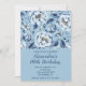 Elégante invitation 66e anniversaire Floral Blue rustique aquarelle