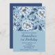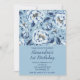 Elégantes invitations de 1er anniversaire Floral Blue rustique aquarelle