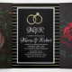 De superbes invitations de mariage - Nouvelles invitations tri-pliées avec espace supplémentaire pour ces annonces spéciales. Invitations de mariage à rayures dorées simulées et noires