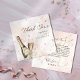 Le "Elegant Petals Bubbly Fête des mariées Carte de remerciements" est un moyen sophistiqué et sincère d'express de gratitude aux invités qui ont célébré la future mariée. Le design présente de délicates illustrations aquarelles de bouteilles et de verres de champagne, entrelacées de pétales parsemés et doux, créant une note de remerciement visuellement attrayante et festive. L'élégante police de caractères ajoute une touche de beauté raffinée, ce qui en fait la façon parfaite de reconnaître la gentillesse et la générosité des êtres chers. Avec un grand espace vide au verso, cette carte offre une touche personnelle pour un message manuscrit d'appréciation. Le recto de la carte présente de charmantes illustrations aquarelles de bouteilles de champagne et de verres clinquants, souvent dépeintes avec de subtils accents dorés pour rehausser l'atmosphère festive. Des pétales doucement peints, dans des teintes qui complètent le design général, sont disséminés autour de l'imagerie bulle, ajoutant une touche d'élégance romantique. L'expression "Merci" est présentée dans une police de caractères gracieuse, exprimant sincérité et appréciation. L'ensemble évoque un sentiment de joie de vivre et de raffinement, en parfaite harmonie avec une douche nuptiale design. Le revers de cette carte de remerciements est volontairement laissé vide, offrant un espace généreux pour un message manuscrit. Cette touche personnelle permet à l'expéditeur d'express sa sincère gratitude dans ses propres mots, faisant de chaque carte une reconnaissance unique et chère. L'espace spacieux accueille des messages plus longs, permettant de mentionner spécifiquement les cadeaux ou les moments partagés de la douche nuptiale. Cet élément personnel élève le simple fait d'envoyer une note de remerciement à un geste d'appréciation plus significatif. Cette carte de remerciements est la touche finale parfaite à une belle douche nuptiale. Son design élégant, avec ses images à bulles et ses pétales délicats, reflète à merveille la nature festive de l'événement. L'inclusion d'un espace vide suffisant pour un message manuscrit assure une expression personnelle et sincère de remerciements. L'envoi de ces cartes témoigne de la gentillesse et de l'appréciation de la future mariée pour la présence et les cadeaux de ses invités, ce qui laisse une impression positive durable. C'est une façon sophistiquée et réfléchie de conclure une occasion spéciale.