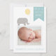 Eléphant mignon avec Faire-part de naissance à ballon faire-part de naissance personnalisable avec illustration d'éléphant gris avec ballon jaune.