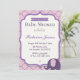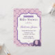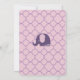 Ce design a le motif de quatrefoil rose et violet sur l'arrière - plan. Sur le devant, l'éléphant avec le motif d'oreille correspondant est en bas à droite. Au dos de la carte, c'est le motif de quatrefoil et l'éléphant au centre.