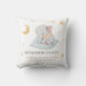 Oreiller de chambre de bébé moderne et mignon avec un éléphant bébé mignon endormi sur un oreiller, lune et étoiles avec informations de naissance : prénom, nom de famille, poids, heure, date et taille. Facile à éditer et à ajouter votre texte. Fait un excellent cadeau pour nouveau-né ou shower de bébé !