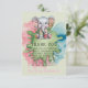 Un éléphant de dessin animé avec un design doux et arrondi et un comportement ludique. Son corps est gris clair avec de grandes oreilles disquettes et un tronc court et courbé. L'éléphant est orné de motifs en patchwork floral fantaisiste cousus à travers son corps, avec des couleurs vibrantes comme le rose, le jaune et le bleu. Les patchs ont des coutures visibles autour des bords, donnant une sensation artisanale et confortable. Ses grands yeux étincelants véhiculent un sentiment d'innocence et de curiosité, et il a des joues roses pour une touche de charme supplémentaire. L'arrière - plan est d'aquarelle Sage vert, rose et bleu. Idéal pour les filles ou les garçons.