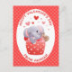 Carte postale de la Journée Valentines pour enfants mignons. Design avec script Heureuse Sainte-Valentin, cupcake d'éléphant mignon, coeur arrière - plan. Personnalisez avec un nom.