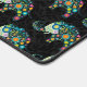 Illustration d'éléphant floral très coloré sur une texture damassée noire de luxe.