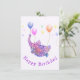 Elephant Flying with Balloons Baby Birthday Card