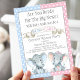 Le genre éléphant révèle l'invitation de la fête avec adorable petite fille et petit garçon éléphants sur un arrière - plan rose et bleu. Ce genre d'éléphant mignon révèle des invitations à des douches pour bébés sont facilement customisés pour votre événement en ajoutant simplement vos détails.