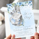 Baby shower d'éléphant garçon avec un petit éléphant mignon avec la couronne prince et le tronc sur un arrière - plan bleu aquarelle. Cette invitation à baby shower d'éléphant mignon est facilement customisée avec vos détails d'événement dans le style de police que vous préférez.