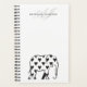 Noir et blanc, silhouette d'éléphant avec de mignons motifs de coeur en combinaison avec le nom monogramme personnalisé en haut. Planificateur simple, minimaliste, monogrammé.