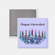 Éclairer les huit nuits de Chanoukah avec cet aimant coloré de menorah! Illustration graphique d'un éléphant, d'une girafe et de l'Étoile de David menorah.