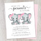 Une invitation à la douche avec "Two Sweet Little Peanuts Are On Their Way", avec une typographie moderne gris-doux et un script élégant, et deux aquarelles rose pastel d'éléphants. Personnalisez avec le nom de la future mère et les détails de la douche dans une simple typographie grise.