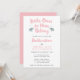 Une mignonne invitation typographique pour le dévouement de votre petite fille avec une ligne de l'hymne populaire Jésus m'aime. L'expression "Les petits à Lui appartiennent" est écrite en police de caractères de pinceau rose, flanquée de deux éléphants gris. Cette invitation offre un espace pour les détails de la cérémonie et de la réception.