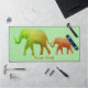 Elephants Design Desk Mat avec texte personnalisable et couleur arrière - plan.