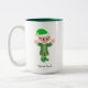 Elfe élégant et mignon de chance avec Mug à script et monogramme. Idéal pour tout le monde. Idéal pour un cadeau de Noël ou d'anniversaire. Le texte peut être personnalisé avec votre texte. Monogramme au centre du côté.