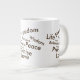 Quelle meilleure manière y a-t-il, que pour boire de votre café dans une tasse qui capture le désir de tout votre coeur ? Ce nuage de mot conçu par main sur la tasse est sûr de vous donner un message positif pendant votre vie active. Élixir de la vie - café !