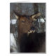 Un wapiti féminin se promène le long de la rive de la rivière à la recherche de nourriture en hiver.