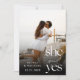Elle a dit oui carte de faire-part fiançailles moderne avec typographie minimaliste moderne et une de vos photos préférées.