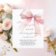 Un élégant arrière - plan blanc, décoré d'un arc rose. Personnalisez et ajoutez un nom et des détails du parti. Texte : Elle attache le noeud. 1 feuille = 1 invitation imprimé bord à bord.