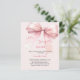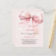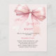 Un élégant arrière - plan rose doux, décoré d'un arc rose. Personnalisez et ajoutez un nom et des détails du parti. Texte : Elle attache le noeud. 1 feuille = 1 invite imprimé bord à bord.