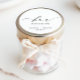 Ces autocollants de faveur de mariage présentent un design minimaliste et un titre en calligraphie. Personnalisez les sacs avec vos noms et date, le titre en script n'est pas modifiable. Ces autocollants de faveur peuvent être utilisés pour les mariages, les enterrements de vie de jeune fille, les baby showers, les anniversaires ou tout autre événement. Pour une personnalisation plus avancée de ce design, sélectionnez simplement le bouton "Personnaliser" ci-dessus.