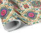 Célébrez l'amour et l'engagement avec ce magnifique papier cadeau de mariage présentant des motifs floraux élégants et deux anneaux dorés entrelacés au cœur du design. Des tons de pierres précieuses vibrants, notamment fuchsia, bleu de cobalt, jaune doré et vert, créent un look audacieux et sophistiqué, idéal pour emballer des cadeaux de mariage ou des cadeaux pour la suite de la mariée. Le motif sans couture garantit une apparence soignée et professionnelle, tandis que les détails complexes ajoutent une touche de romance et de charme. Parfait pour les mariages, les anniversaires ou toute occasion romantique spéciale.