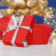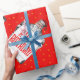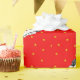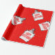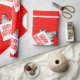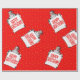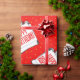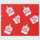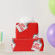Papier d'emballage amusant spécialement pour le bébé de Noël de tout âge ! Le Père Noël tient un panneau qui dit JOYEUX ANNIVERSAIRE, avec un fond rouge vif. Par Scarebaby Design.