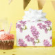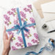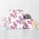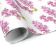 Des fleurs de lilas, de pourpre clair et de blanc, sont reproduites en biais sur le papier.