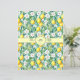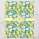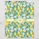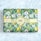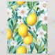 Un enveloppement pour savon artisanal avec citrons, fleurs blanches et feuilles verts.